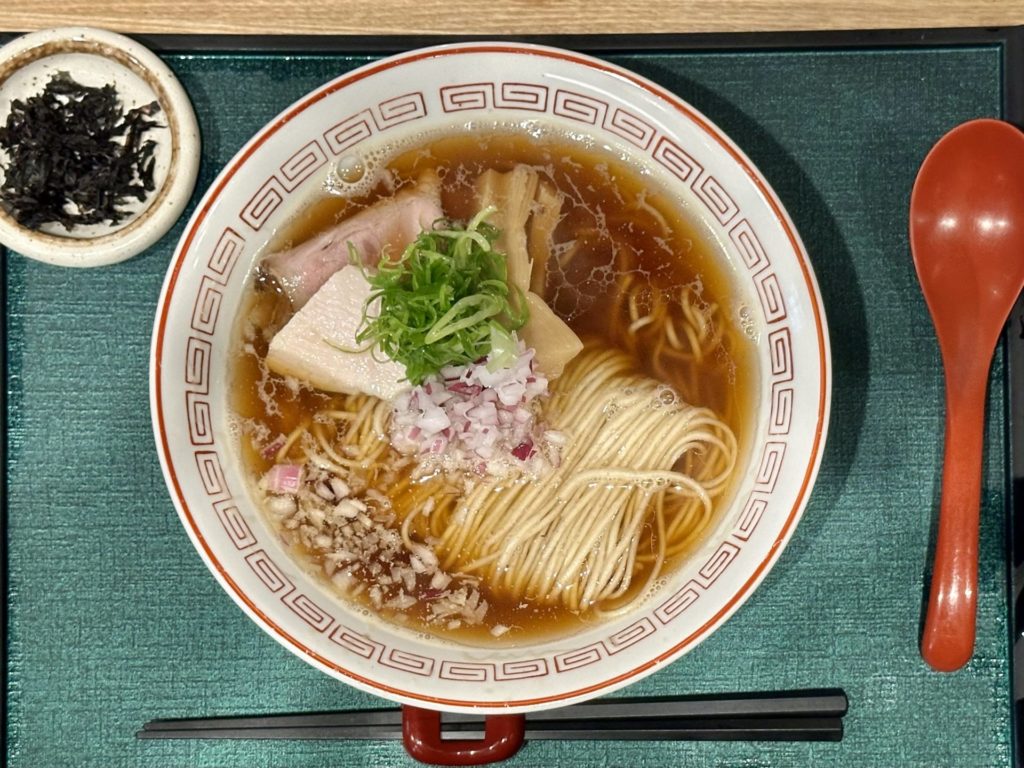 旅3杯目はこちら。コシのあるストレートの細麺に煮干しの旨みが凝縮されたスープ。上品な盛り付け。スープの底が見えるまでは秒であった。