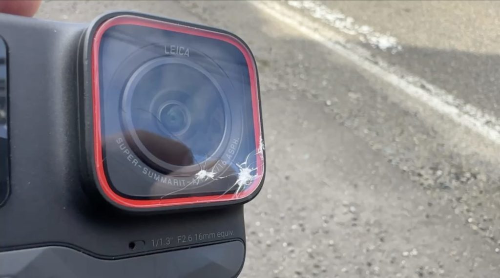 そのときである。誤ってカメラを落車させてしまった。レンズの表面のカバーガラスが割れ、本体もボコボコだ。でも一応動いているのが救い。