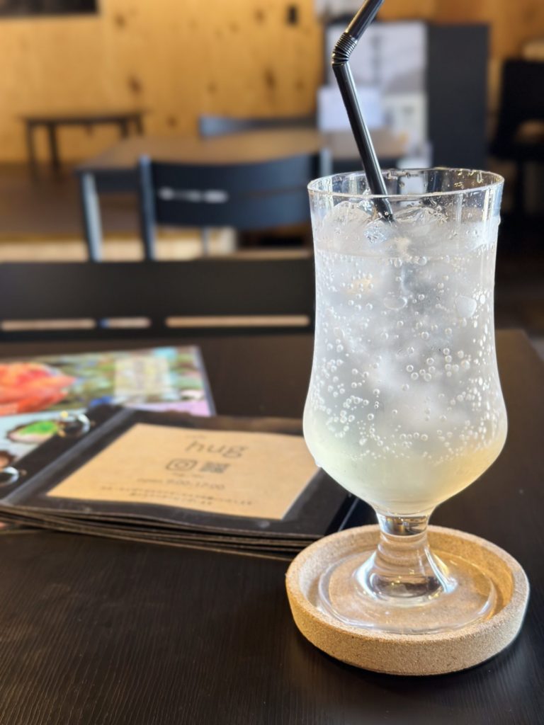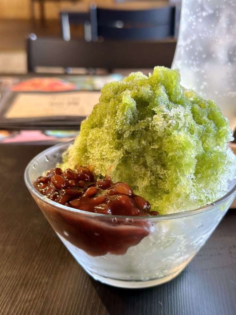 帰り道は、能生にあるカフェhugさんに立ち寄る。ここも教えていただいたお店だ。好物のレモネードと、メニューをみて心を惹かれた宇治金時のかき氷をいただく。