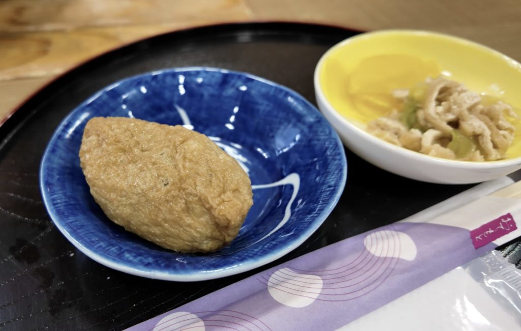 このブログを読んでくれている方なら、このそばいなりをご存知の方も多いかもしれないが、一体何がどうそばいなりなのか、中身がとても気になっていた。妄想では、ふつうのお米のおいなりさんに、ひじきとネギと細かく刻んだ蕎麦が入ってる。そんなイメージだったけど、想像以上にそばいなりだった。うん、これは僕もそばいなりって名前にするだろうな。
