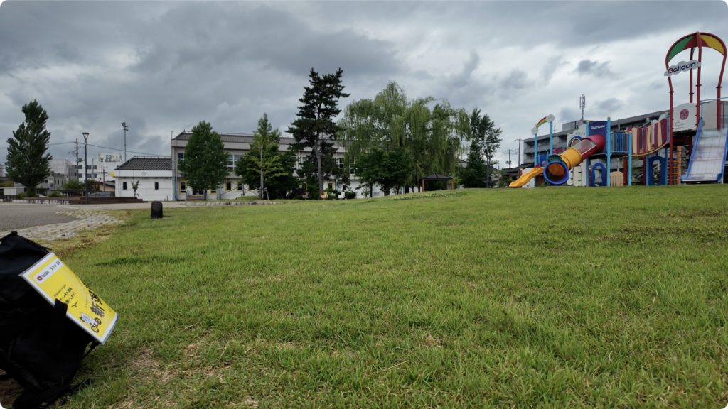こちらは一ノ木戸ポプラ公園。僕の母校、一ノ木戸小学校跡地の公園だ。三条に来ると、ほぼ必ずここに来て休憩をする。
