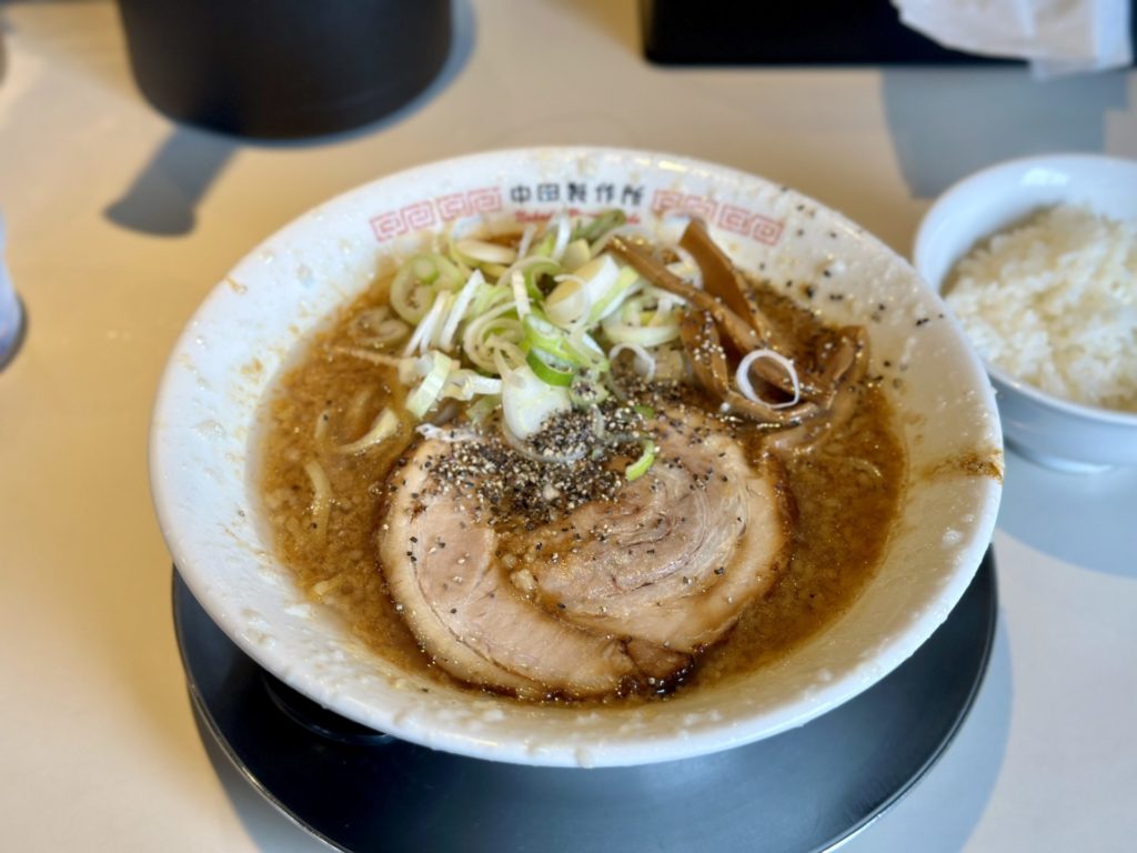 スープは濃すぎることもなく適度な濃さだが、そのブラック感、いや「やってる感」は存分に味わうことができる。腹にガツンとくる一杯だ。もちろんライスも忘れてはいけない。