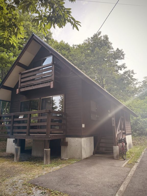 長い道のりを経てようやく宿のある施設に到着。宿といっても今日はコテージだ。津川は高級宿ばかりで、安価に宿泊できそうな場所が見当たらなかったため、こちらをチョイス。得意の「やってる感」は申し分ない。