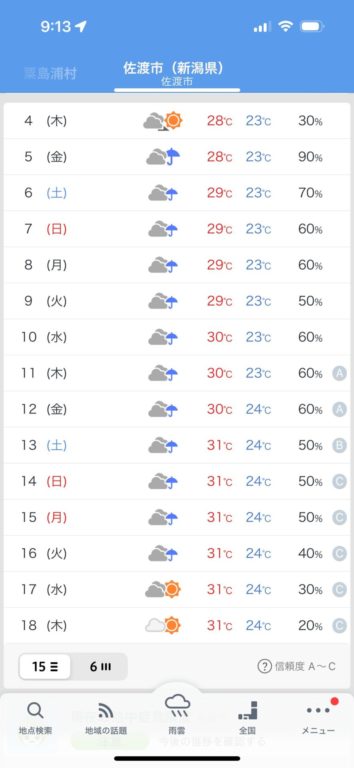 しかし、晴れマークを待っていたら一生出発できないだろう。