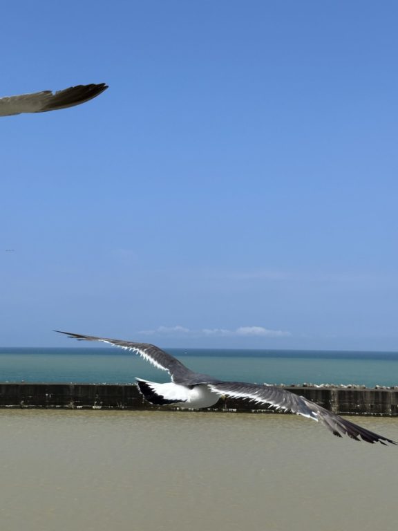 ユリカモメの群れに見送られながら出港。