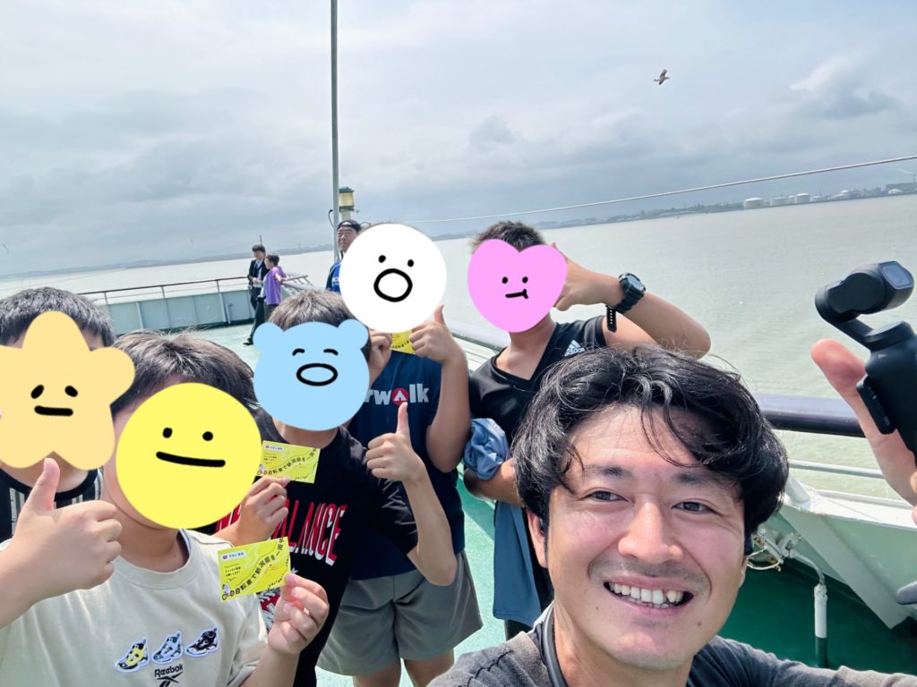 船内では修学旅行?の小学生たちとしばしの交流。