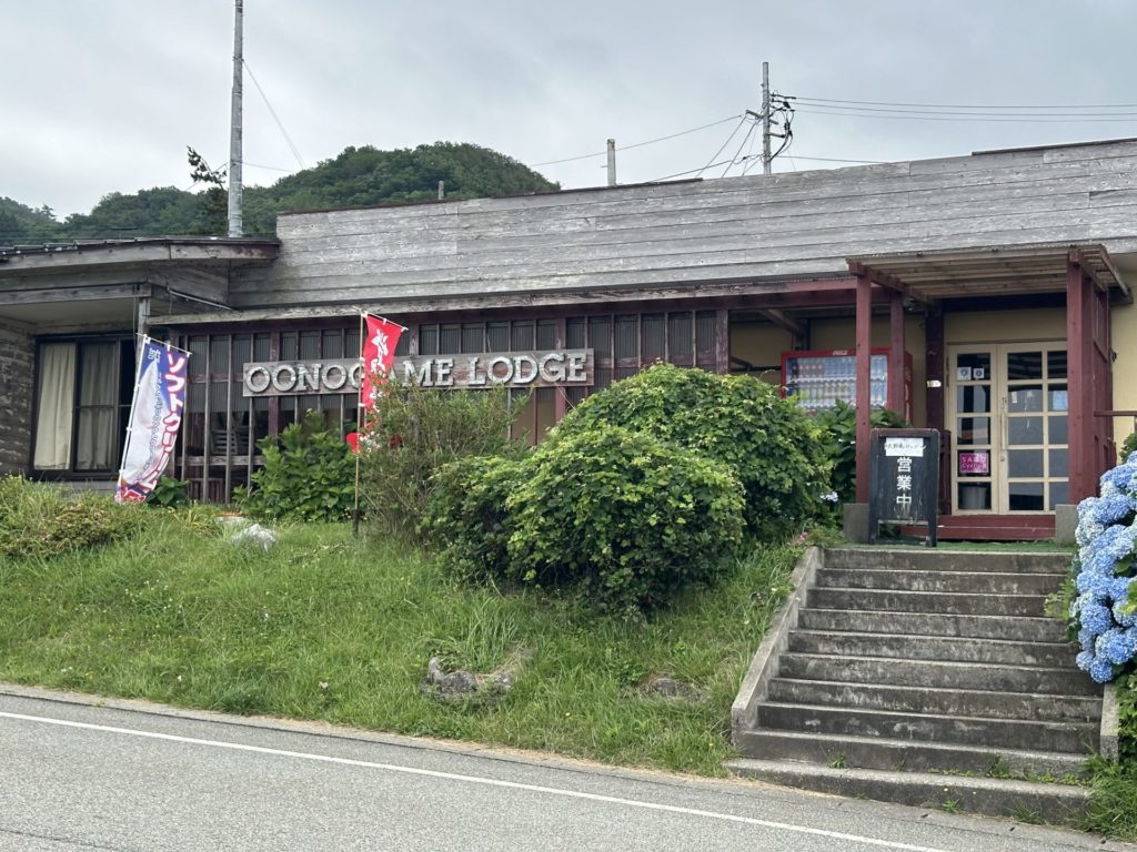 近隣の貴重な食堂「大野亀ロッジ開店」まで20ほど待つ。機材の充電と水分補給の貴重なスポットだ。